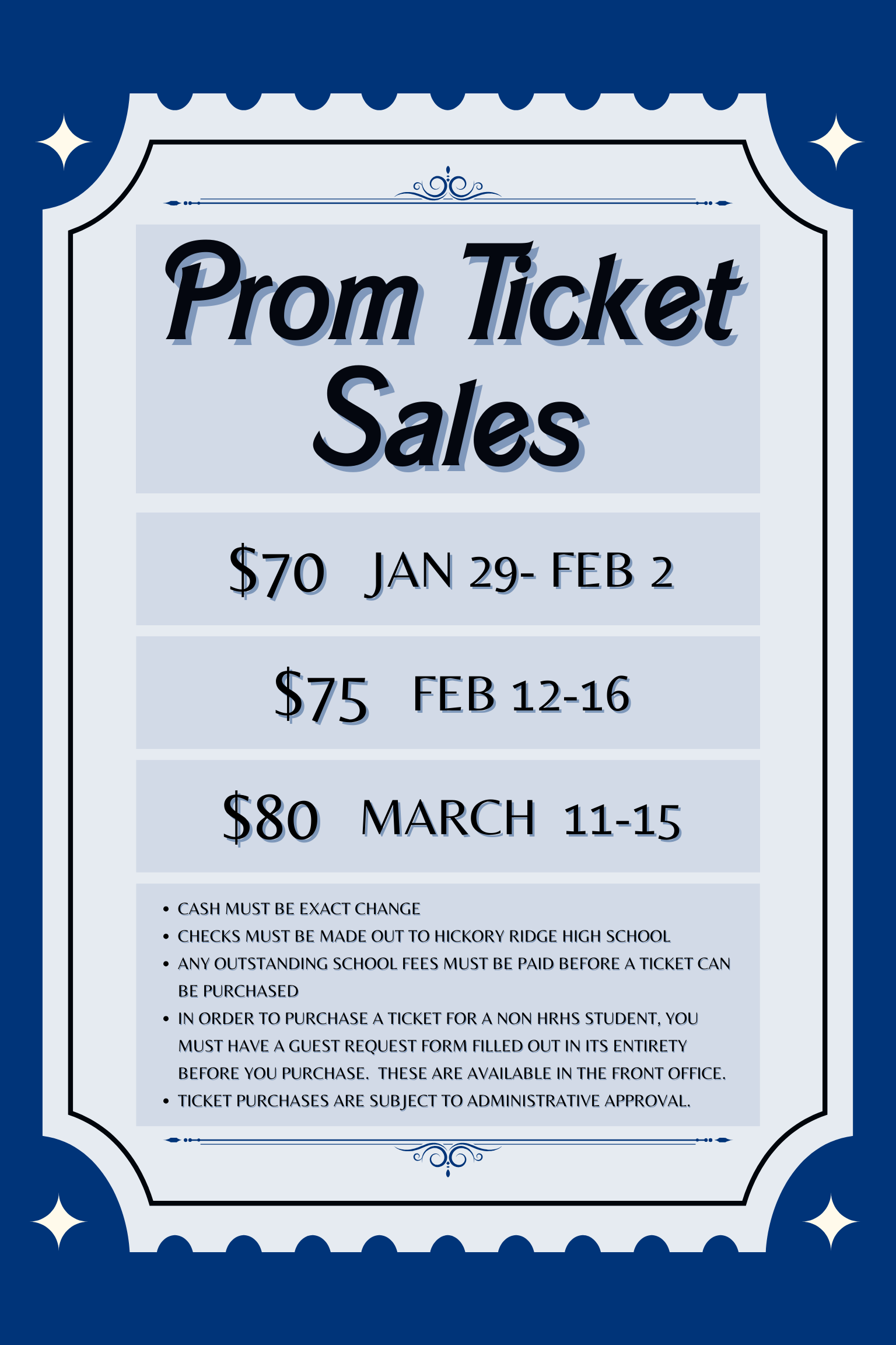 The HRHS Prom will be April 6th. All Juniors and Seniors have the opportunity to purchase tickets. Save money and buy your tickets early before prices go up!