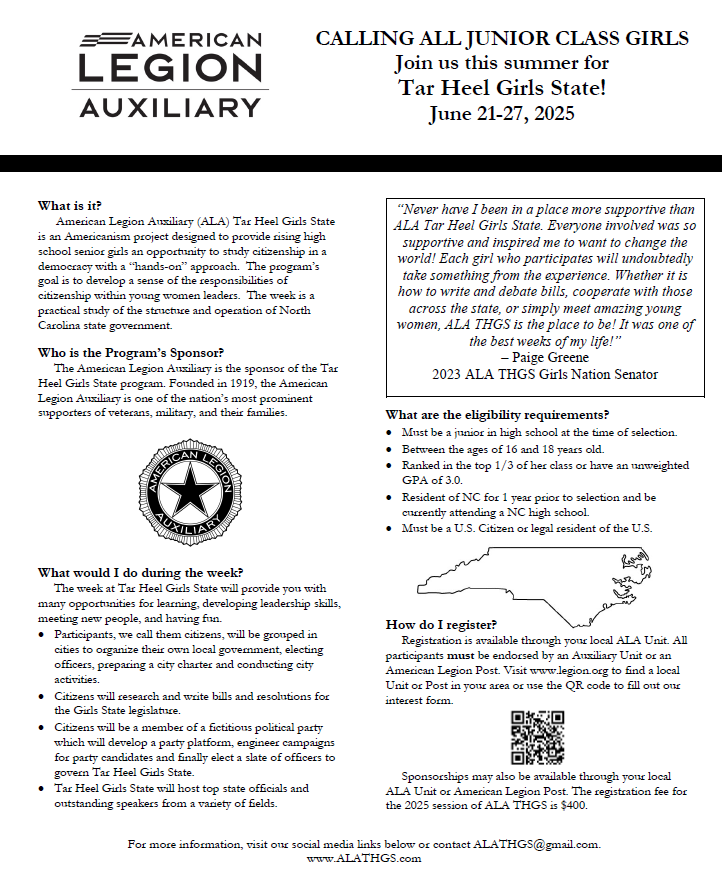 ALA Tar Heel Girls State Summer Program
